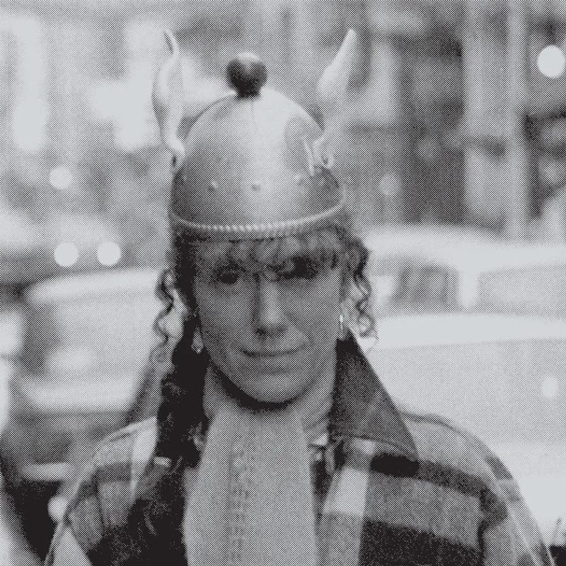 The Space Lady began her odyssey on the streets of Boston in the late 70s, then San Francisco ten years later, playing versions of contemporary pop music with an accordion and dressed flamboyantly. Following the theft and destruction of her accordion , The Space Lady invested in a then-new Casio keyboard, complete with a phase shifter, delay pedal and headset mic, birthing an otherworldly new dimension to popular song that has captured the imaginations of the underground and its leading exponents ever since.