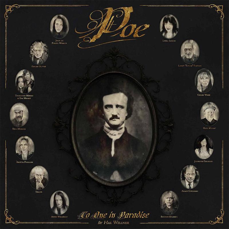 Edgar Allan Poe‘s timeless poetry read by artists, writers, poets, musicians & magicians, in service to the work and also to the memory of a great friend and fellow traveller on the musical roads least taken, Hal Willner. Kramer has curated an eclectic list of voices to render fresh vision to old words. The music he created that accompanies each reading keeps the light shining on the performer, polishing the space between the poetry and the performance. As a fitting coda, an archival recording of Allen Ginsberg vividly reciting ‘The Bells‘ closes out the album. The unaccompanied reading from June 1981, is an excerpt from his ‘Expansive Poetics‘ study course at The Naropa School of Disembodied Poets – Boulder, CO.