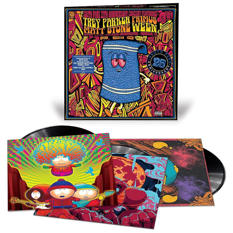 Celebrating 25 years of the animated sitcom South Park at the famed Red Rocks Amphitheatre in Morrison, Colorado, this 3LP package, pressed on black vinyl, features South Park creators Trey Parker and Matt Stone along with Primus and Ween performing a variety of songs made famous by the show.